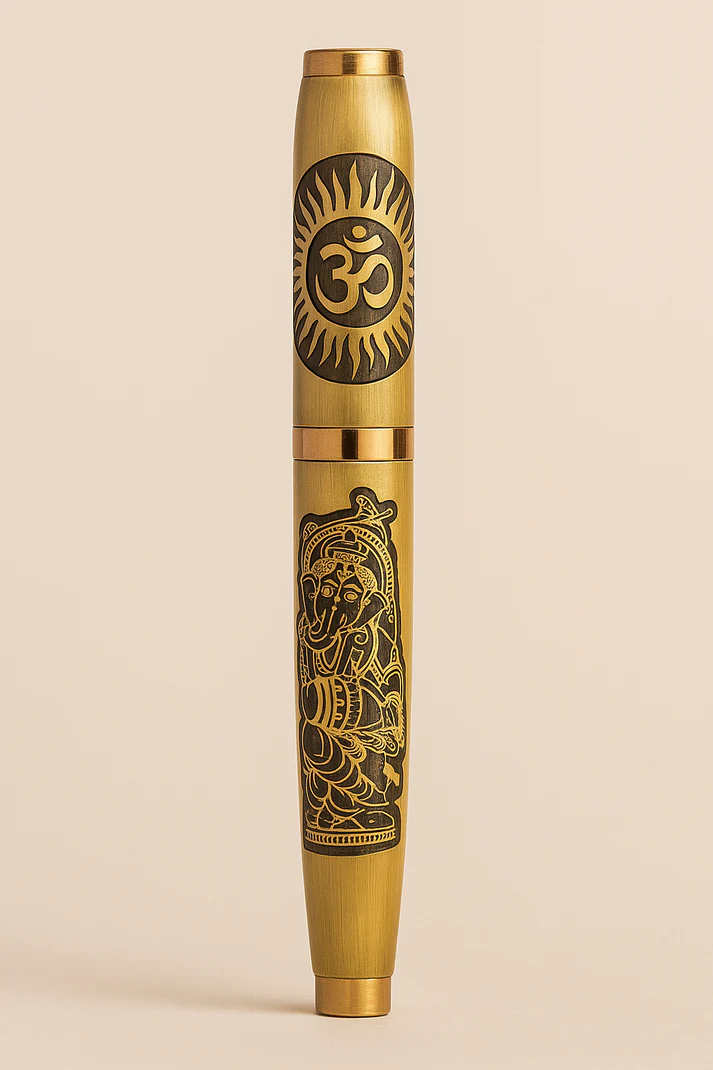 Elevate your writing experience with the Ganesha Pen, a beautifully crafted premium pen that blends divine inspiration with everyday functionality. Featuring a symbolic design inspired by Lord Ganesha, this pen is perfect for daily writing, gifting, and spiritual significance. It delivers smooth, reliable ink flow and a comfortable grip for effortless writing. With its elegant look and meaningful motif, it makes a thoughtful gift for students, professionals, and devotees alike.