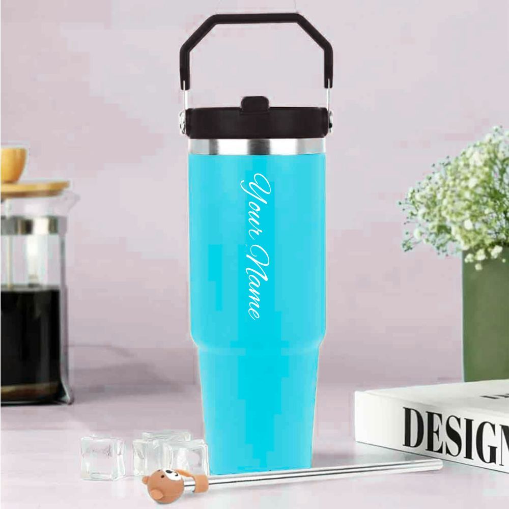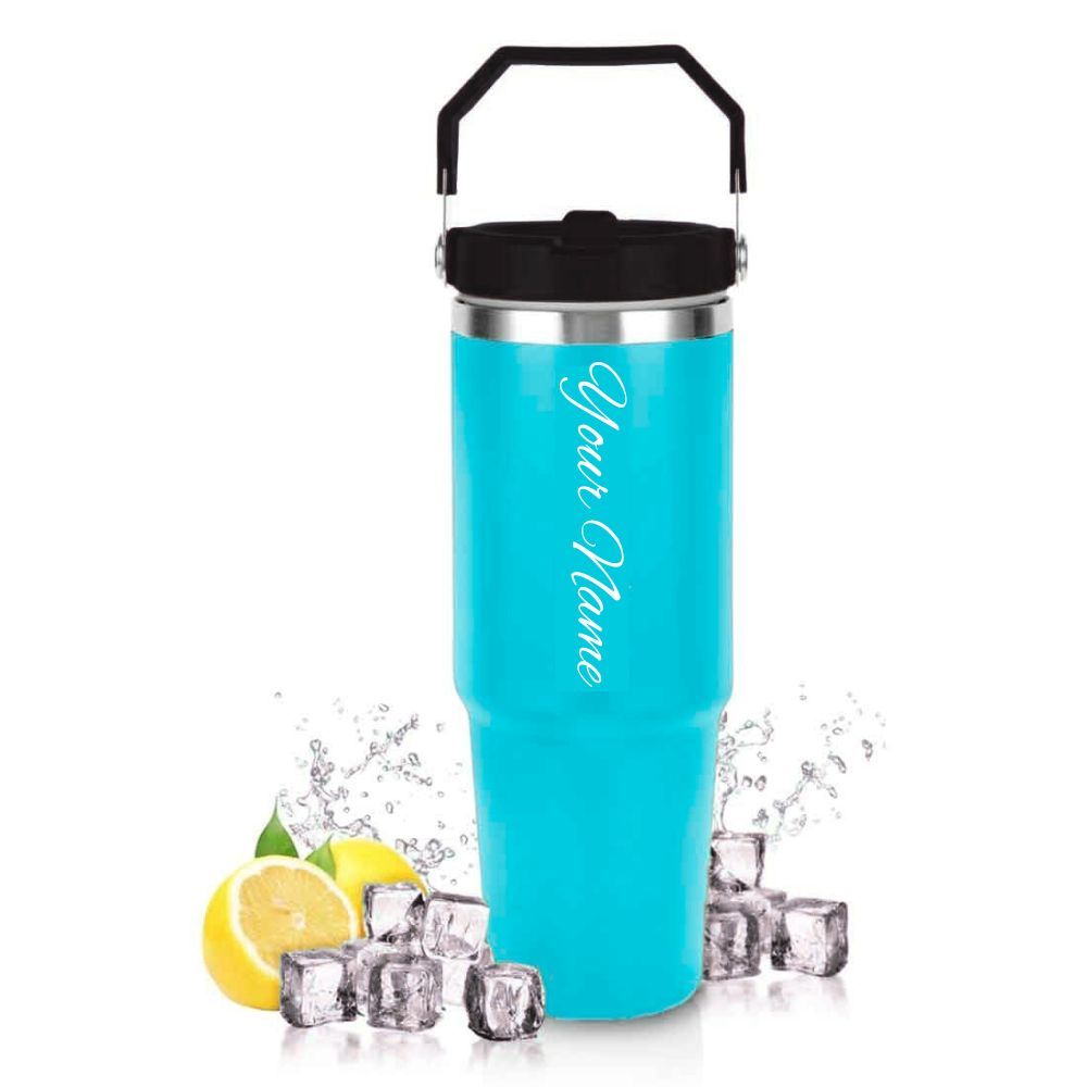 Hydrate in style with the Customised India Personalized Tumbler with Handle! Made from premium 304 stainless steel and BPA-free materials, this 900ml double-wall vacuum sipper keeps your drink at the perfect temperature for hours. Featuring a leak-proof design, slide-in sipper, and adjustable handle, it’s both cool and convenient.